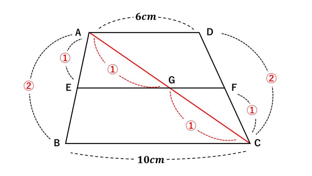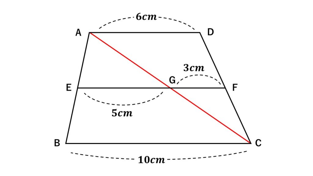 対角線$AC$を引き、$EF$との交点を$G$とする