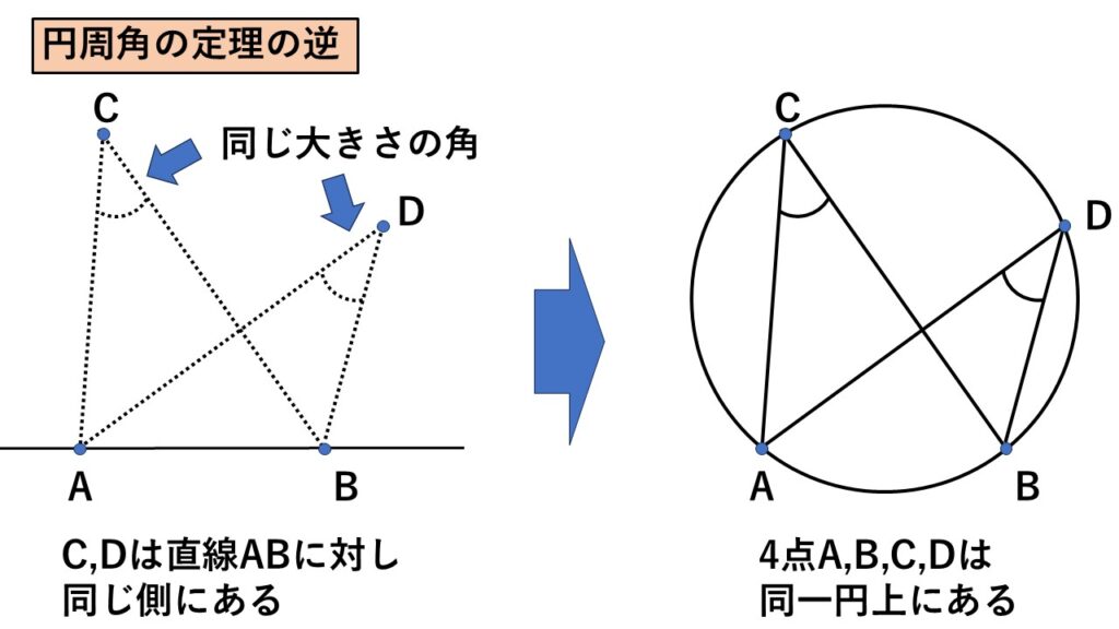 円周角の定理の逆とはものすごくざっくり言ってしまえば、