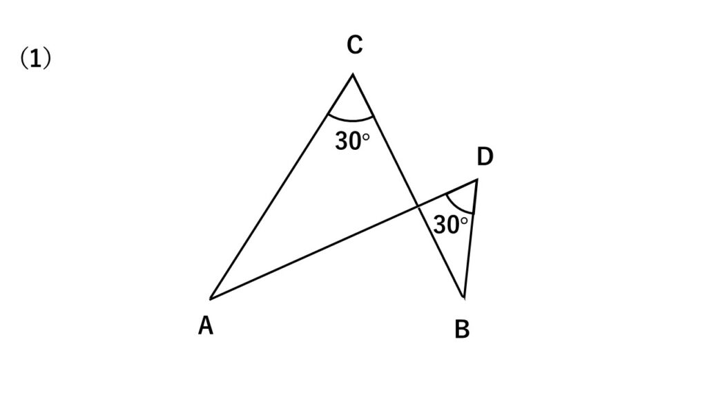 $(1)$のように2つの三角形がつながった状態で出題される円周角の定理の逆を使った問題は、最も基本的なものといえます。