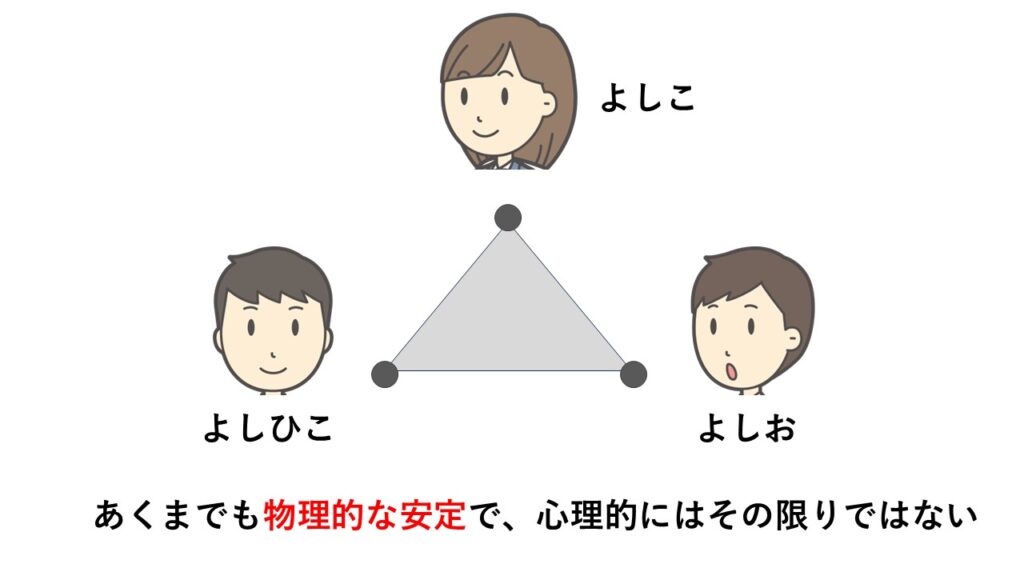 3点があれば安定するとは、あくまでも物理的な意味での安定です。