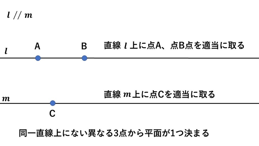 平行な2つの直線があれば平面は1つに決まる
