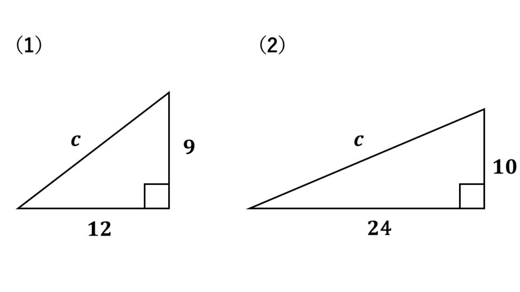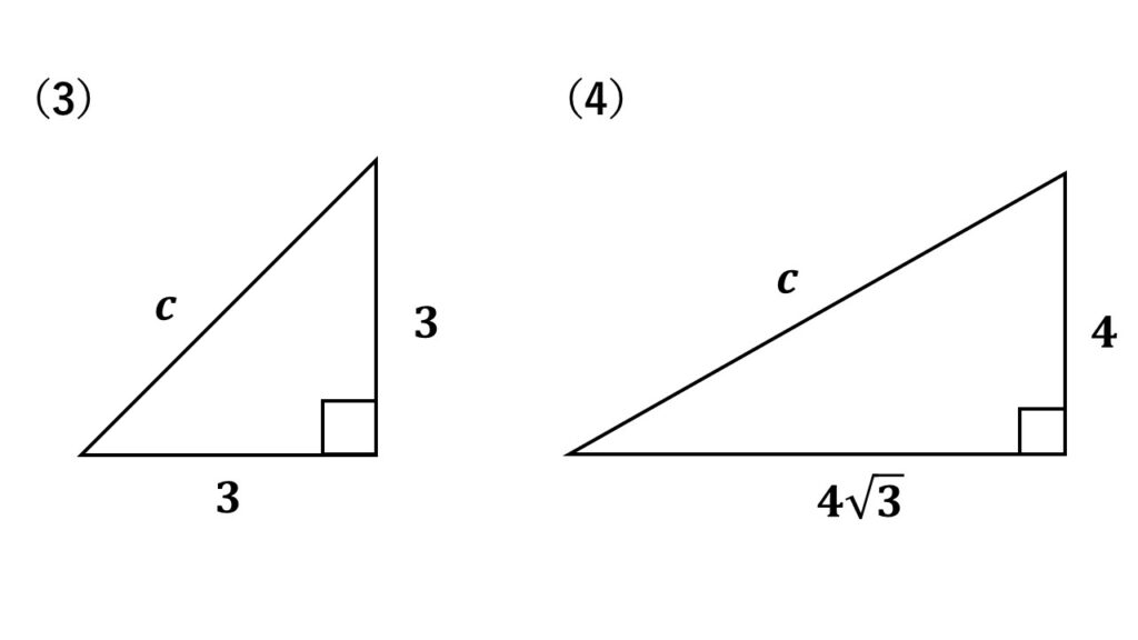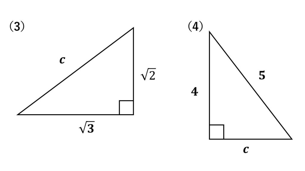 次の $(1)~(4)$ の図で、$c\:$の長さを求めよ。