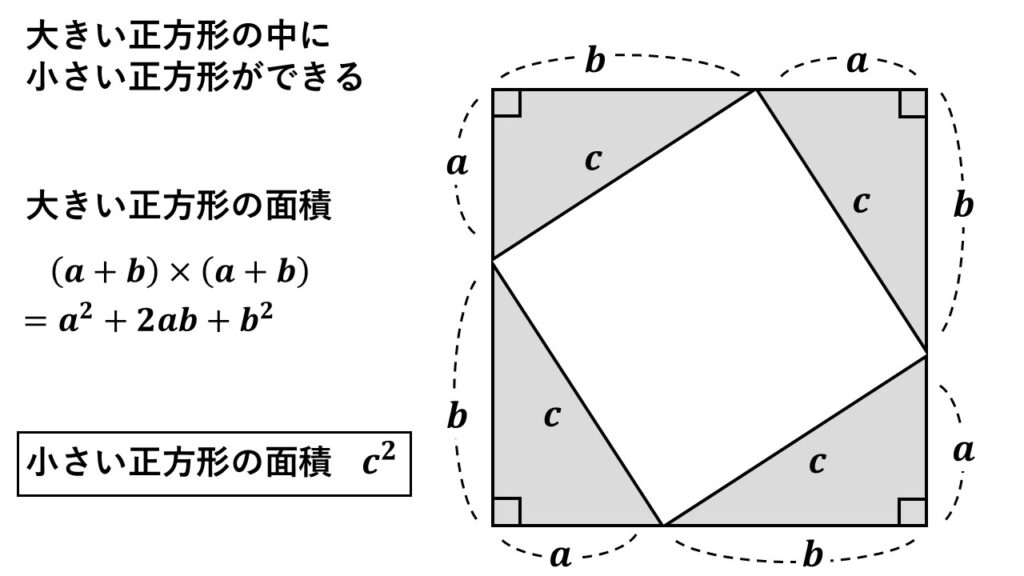三平方の定理の証明は正方形の面積を根拠としています。
