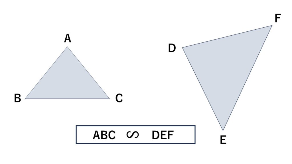 相似の関係を表すときは合同のときと同様、対応する点の順でアルファベットをかくのが基本です。