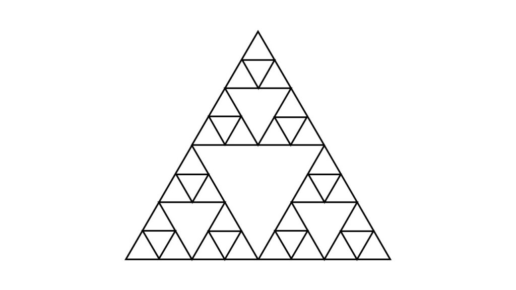 これらは1つの三角形を縮小したものをある規則に沿っていくつも並べたものです。
