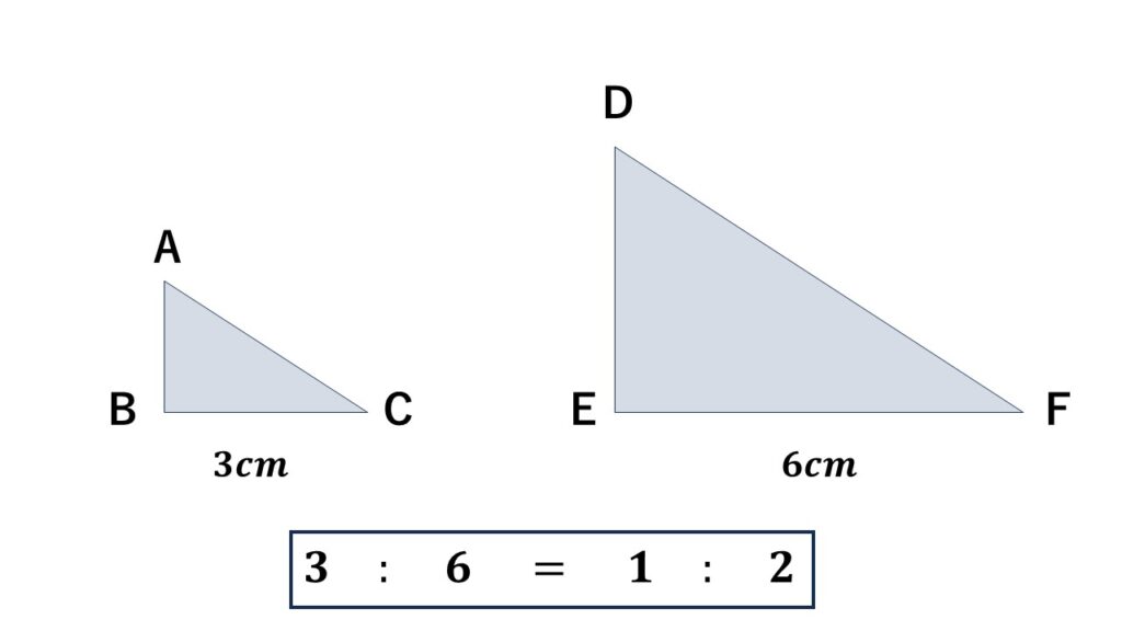 $BC$と$EF$が対応し長さがそれぞれ$3cm,6cm$とします。